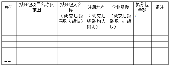 拟分包计划表(如分包时必须提供)