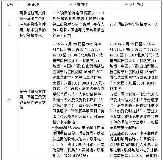 更正事项:竞争性磋商文件