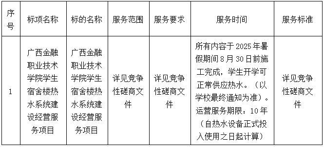 二、项目名称:广西金融职业技术学院学生宿舍楼热水系统建设经营服务项目